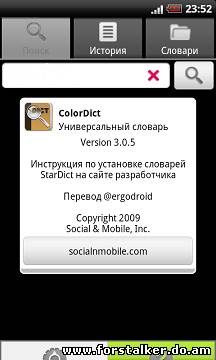 Описание: ColorDict - словарь, поддерживающий формат StarDict. Позволяет вести поиск по множеству словарей сразу. История поиска, гибкие настройки, подключение/отключение словарей. Поиск по википедии и использование google translate